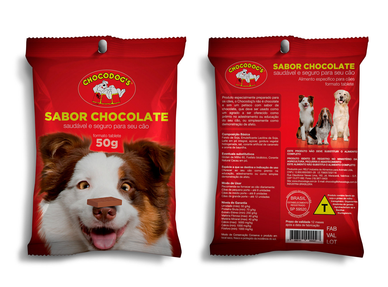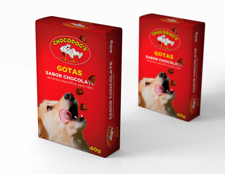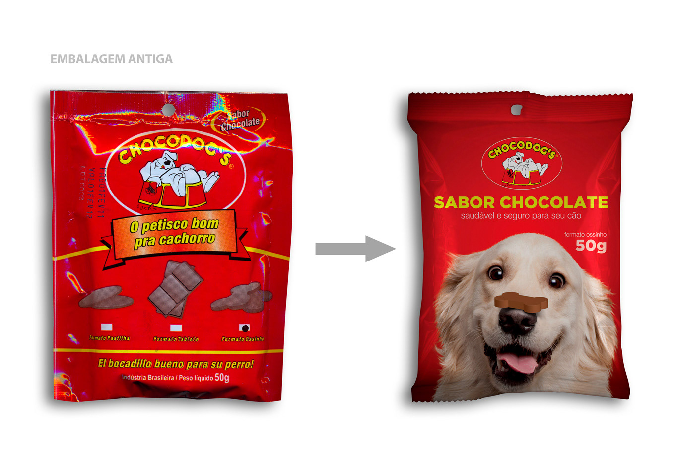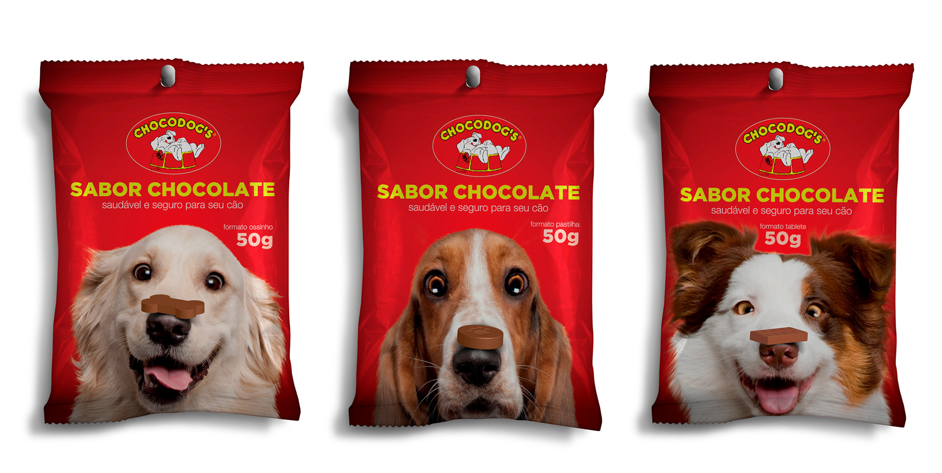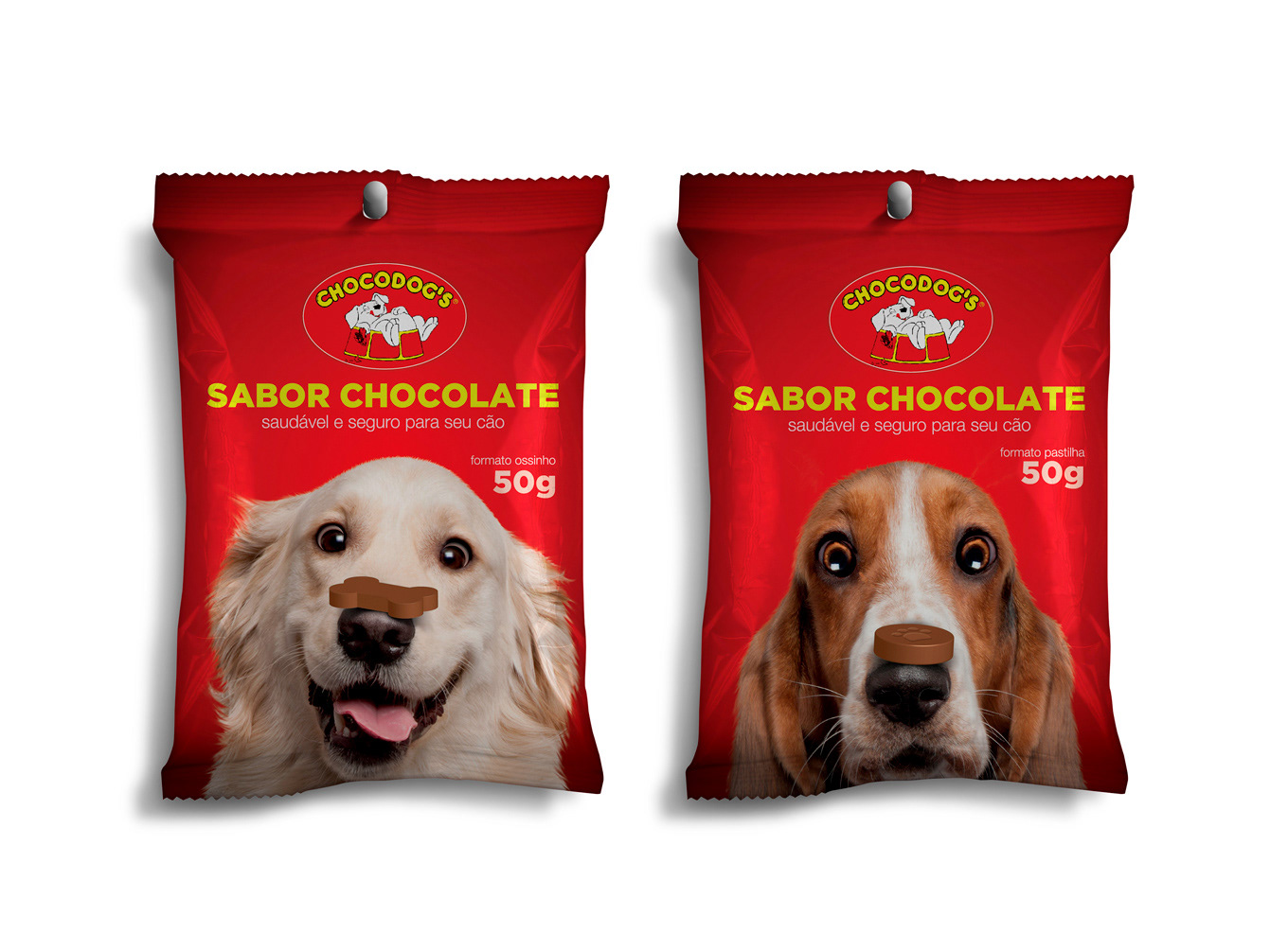 Redesign da linha de embalagens Chocodog’s, um alimento para cachorro “disfarçado” de chocolate.